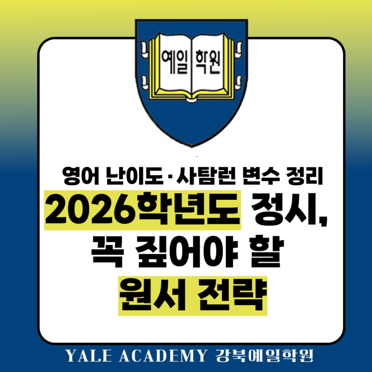 2026학년도 정시, 사탐런 상황에서 꼭 짚어야 할 원서 전략 / 강북구 정시컨설팅 강북예일학원 월계고 신일고 영훈고 염광고