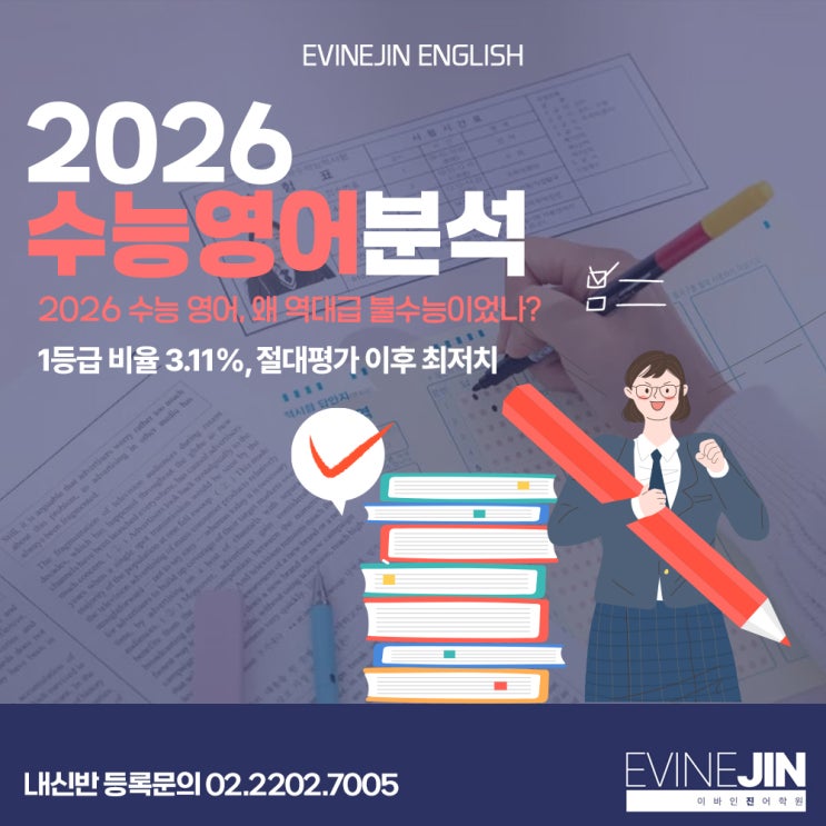 방이동영어학원 영파여고영어학원 보성고영어학원 안녕하세요 방이동영어학원 이바인진어학원 중고등부입니다. 내신/수능 명문 진영어학원 때부터 수능/모평 분기에서는 분석을 꼭 잊지 않고 하고있는데요 오늘이 수능 성적 통지일이었는데 원하는대로, 했던만큼을 노린다...는 말이 그 어느때보다도 어려웠을것같습니다 수능이 전체적으로 난이도가 높아서 이렇다 저렇다 말을 내놓기가 선생님들도 학생들도 학부모님들고 어려우실거라 생각합니다. 이번 분석은 수능영어만 놓고 분석을 해보았습니다 올해 3,6,9월 주요모의고사랑도 종합적인 분석을 2편으로 준비해보았는데 이번 수능이 그만큼 말이 정말 많죠? 2026학년도 수능 영어는 이미 언....... <img src="https://blogthumb.pstatic.net/MjAyNTEyMDVfMjcx/MDAxNzY0OTMxNTg1Njc4.fJDEs842a04tYPpKn6KN0Rq5SsXTs9wT8wtPROjdMFIg.C9BTYXpHGp4MZEdrBO00ub3K8Ab-neGE3BWbh5-n3H0g.JPEG/%B9%E6%C0%CC%B5%BF%BF%B5%BE%EE%C7%D0%BF%F8.jpg?type=s3" />