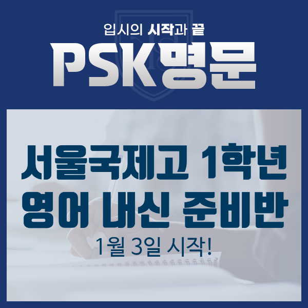 안녕하세요 PSK명문입니다. 오늘은 서울국제고 영어 내신 준비 관련 내용입니다. PSK명문은 서울국제고 1학년들의 내신을 7년간 지도했습니다. 학교 영어 내신의 특성과 준비 방법에 대한 내용입니다. 한때는 영어와 PSPR를 1학년 때 동시에 진행했지만 2년 전부터는 1학년 때 영어, 2학년 때 PSPR을 진행하고 있습니다. 서울국제고 1학년 영어 수업 1학년 영어는 A, B, C로 나누어 각각 writing, non-fiction reading, literature를 배우게 됩니다. 각 수업에서 정해진 교과서는 없으며, 프린트물, PPT로 수업을 진행합니다. 중간과, 기말이 각각 20%, 수행 평가가 60%의 비중으로 점수가 채점됩니다. 수행 평가는 60%로 영어 writing, presenta....... <img src="https://blogthumb.pstatic.net/MjAyNTEyMTZfMzIg/MDAxNzY1ODcyNTg2OTc0.d65klukBKT5sgr9AQbt2aOeYr1DQVSPX9-aA-6uCB-Ig.nnIXmg6KH5KqClJh0IYboW7F5OelekgOhR_xaEFghtIg.PNG/PSK%B8%ED%B9%AE_%BD%E6%B3%D7%C0%CF.png?type=s3" />