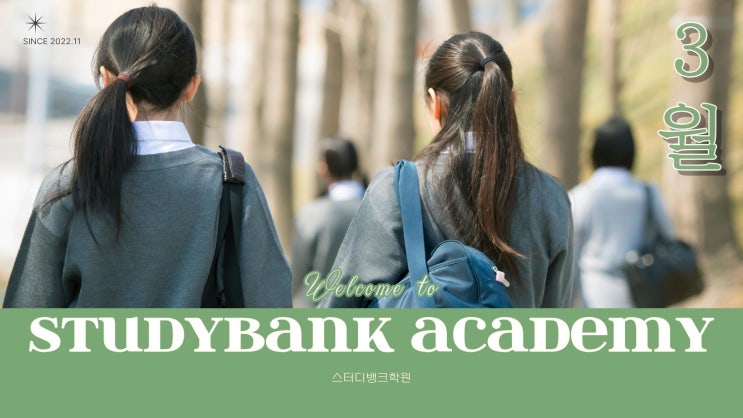 안녕하세요 :) 스터디뱅크 학원입니다. 드디어 새학기 3월이 시작되었네요!! 스터디뱅크학원 학생여러분 모두들 힘내서 올 한해도 열심히 달려보자구요1 2026년의 연간 주요 일정입니다 :) 3월부터 새 학기가 시작되며 4말 5초에 1학기 중간고사, 6말 7초에 1학기 기말고사 7~8월 여름방학이며 9월부터 2학기가 시작됩니다. 10말 11월초에 2학기 중간고사 12월 중~후반 2학기 기말고사 로 학기가 마무리됩니다 ^^ ※ 대략적인 일정이며 학교마다 일정은 상이할 수 있어요! ※ 실제로 중간고사를 처음 겪어본 올해 고1학생들은 수시와 정시가 더 와닿았을것 같네요! "고등학교 = 내신" 인만큼 2학년까지는 내신등급 따기에 최선을....... <img src="https://blogthumb.pstatic.net/MjAyNjAzMDJfMTAx/MDAxNzcyNDQyMjU4Mjgx.0Wqx1gGRDeur8pi8XbLxzovnvp5wKd1-77jrfM5GWTAg.kfgOKItt5nfPifY4Hd12oOGi3N2VuQIimKxwba4Lsnwg.JPEG/1.jpg?type=s3" />