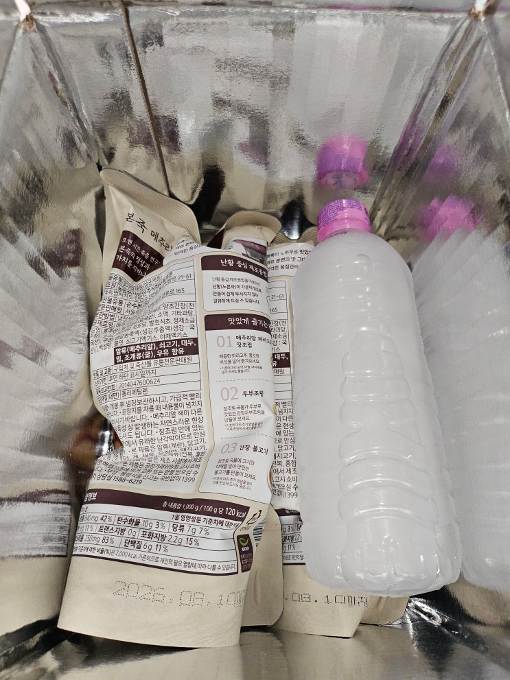 생수얼려서 넣어주는 센스 물도 한통 먹을수 있네요 신선집중 박스도 냉장식품보존하는듯한 좋네요 본죽 대용량 냉장 메추리알 장조림 1키로 2팩 <img src="https://blogthumb.pstatic.net/MjAyNjAzMDNfMjI0/MDAxNzcyNTAxODk2Mzky.AmvMFGchWVIIVdMEiP_2O5QEWXx7IpPDmNAbhCTrIXcg.SaOW2MZ-Nne5eY-8hjkJxol7cx8SJ7maO_vM86k8e3gg.JPEG/20260221%A3%DF121420.jpg?type=s3" />