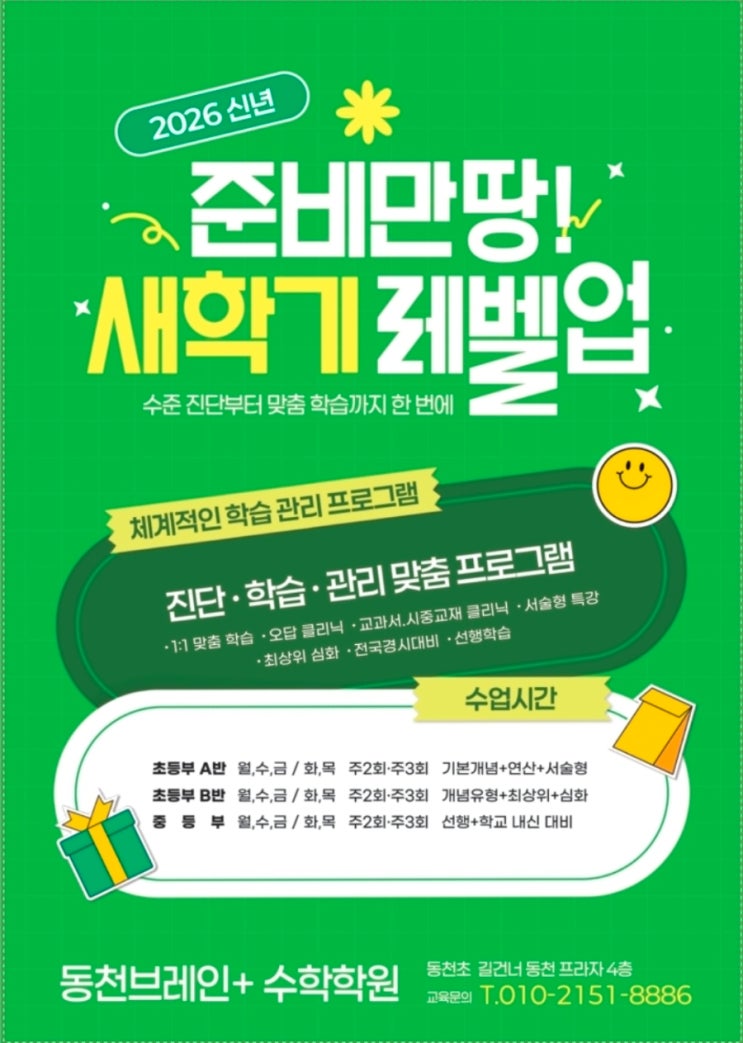 동천브레인 플러스 수학학원 새학기 전단지 곧 학교앞에서 만나요!
