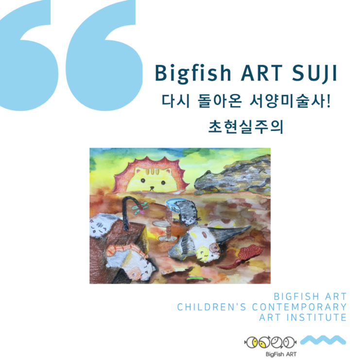 서양미술사 07. 초현실주의 겨울학기 마지막으로 만나보는 서양미술사는 [초현실주의]!! 초현실주의를 대표하는 살바도르 달리와 그네 마그리트의 작품을 집중적으로 감상하면 V 나의 꿈 속은 어떤 이야기가 있나요? 꿈 속과 무의식을 표현하는 방법을 이해해보는 시간~ #수지초등미술 #성복역미술 #성복동미술 #수지이편한세상미술 #빅피쉬미술 <img src="https://blogthumb.pstatic.net/MjAyNjAzMDVfNDAg/MDAxNzcyNjk0Njg3NDMx.ukAS9iCkK_03TGminLgOz81NAvufTKm_53o2e7AEH3Ig.VKTtJPbVqfK0T0LPL9QrCKSRMXHnhquZPm5_K4OKXzQg.PNG/IMG%A3%DF0973.PNG?type=s3" />