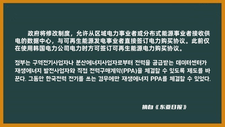 [천안중국어학원]ITT중국어통번역-"政府将修订制度与再生能源事业者签订协议" , "재생에너지 사업자와 협약 제도 개정"