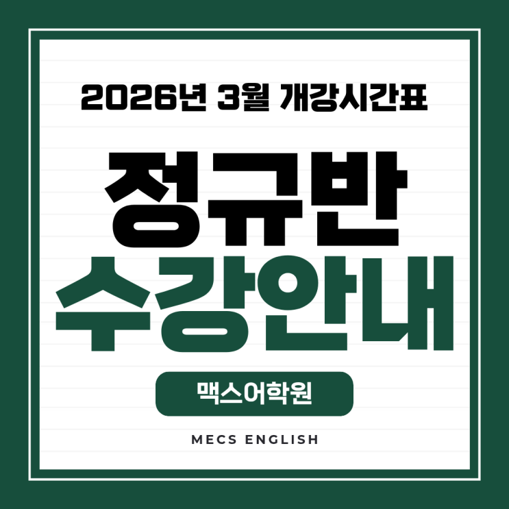 2026년 3월 정규반 수업시간표