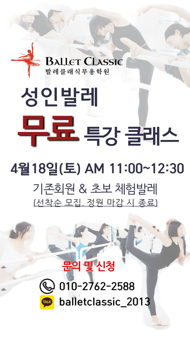 [금호동/옥수동/옥수역/금호역/한남동/서울숲] 놓치지 마세요! 봄맞이 성인발레 무료 특강 클래스에 초대합니다! 성인반회원님들 大환영 발레가 처음인 초보 성인발레체험도 가능!