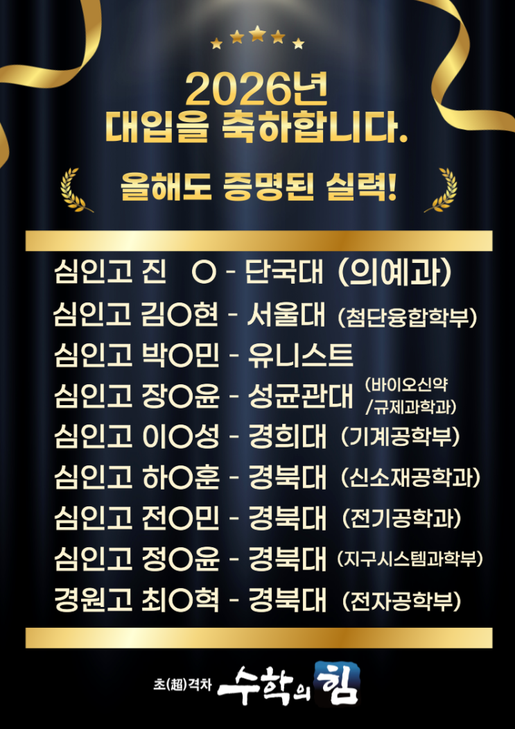 수학의힘 학생들의 2026년 대입을 축하합니다.