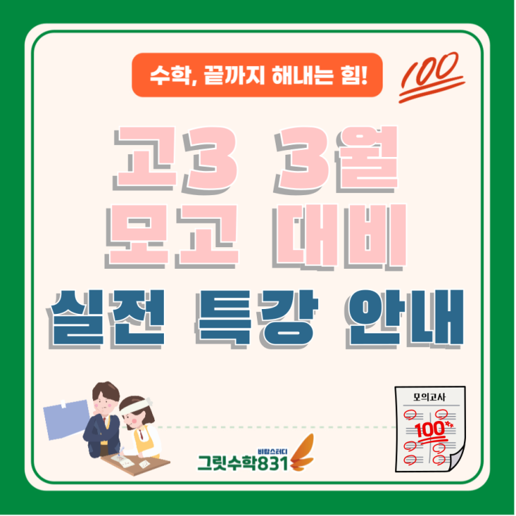 범어동 수학학원 [그릿수학831] 고3 3월 모고 대비 실전 특강 안내