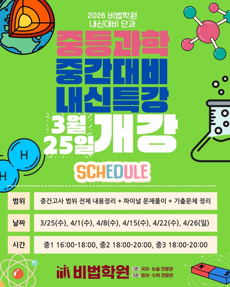 3/25(수) 과학 내신특강 개강[26-1 중간고사 대비]
