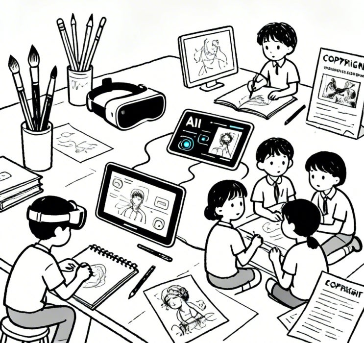 안녕하세요! 큐피드아트입니다. 2026년 미술 교육 시장은 디지털 기술과 다양한 융합 방식이 크게 확장되면서 변화하고 있습니다. 전통적인 그림 그리기나 조형 활동뿐 아니라, XR(확장현실), VR(가상현실), AI를 활용한 체험형 수업이 늘어나고 있어 아이들이 미술을 더욱 깊고 다채롭게 경험할 수 있게 되었지요. 또한, 미술 교육이 단순 기술 습득을 넘어 창의성, 문제 해결력, 협업 능력 같은 미래 역량을 키우는 방향으로 발전하고 있습니다. 특히, 디지털 아트가 미술계의 주류로 자리 잡으면서, 미술 교육 현장에서도 디지털 도구와 미디어를 활용하는 수업이 점점 많아지고 있습니다. 여기에 AI 저작권 관련 법제도 강화되면서, 학생들이....... <img src="https://blogthumb.pstatic.net/MjAyNjAyMjVfNTcg/MDAxNzcxOTg4ODUxMDk1.wdmV3YzVaxHo5JjddsiTvlq0YvaKVrtwefs_go5Par4g.pVnMIEerf6XpUQQ1Bm9djM4kjamfXFKCyzm5YhqPFsgg.JPEG/image-1771988812323.jpg?type=s3" />