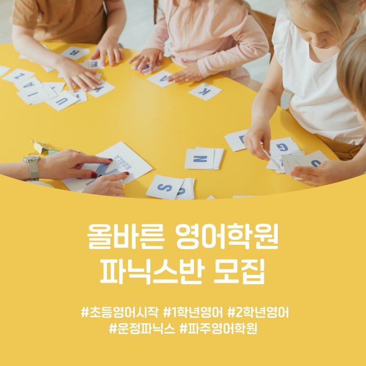 안녕하세요, 아이들의 성장을 함께하는 올바른 영어학원입니다! 새 학기를 앞두고 우리 아이 첫 영어 공부, 어떻게 시작해야 할지 고민 많으시죠? 우리 아이들이 영어라는 새로운 세상을 가장 즐겁게 만날 수 있도록 초등 저학년 대상 파닉스 기초반을 개강합니다. 이미 대기 중인 친구들이 있는 인기 클래스예요! 남은 자리가 많지 않으니 서둘러 확인해 주세요. 왜 '올바른 영어학원'의 파닉스일까요? 1. 영어가 '학습'이 아닌 '놀이'가 되는 시간 초등학교 1, 2학년은 영어에 대한 첫인상이 결정되는 아주 중요한 시기입니다. 딱딱한 주입식 교육이 아니라, 여러 활동을 통해 아이들이 스스로 입을 열....... <img src="https://blogthumb.pstatic.net/MjAyNjAyMjVfMTY1/MDAxNzcyMDAxMTM2MjQy.eBI86f8RBIXaZHTLcdTUzS1uPa-xh9AUIDrxzPaJqPcg.lNXRmWHlWWxBV4S2zd_Cg3ccMj0TBOrWOFlBsJ07A2Eg.JPEG/%C6%C4%B4%D0%BD%BA%B0%B3%B0%AD%B9%DD%BB%E7%C1%F8.jpg?type=s3" />