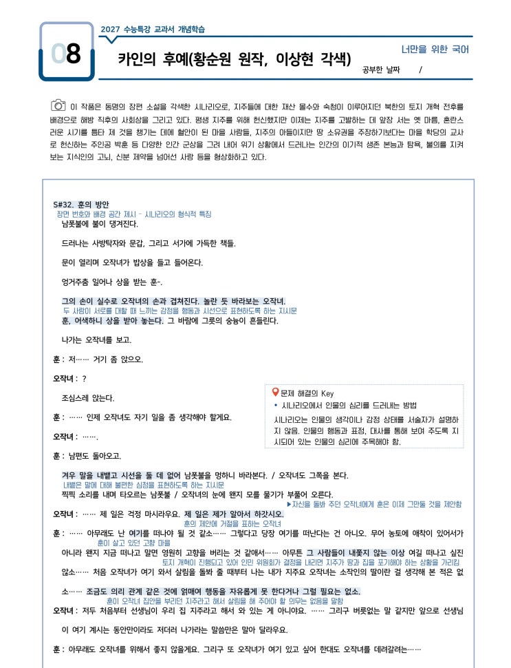 [너만국 자료실] 2027 수능특강_ 카인의 후예(황순원 원작, 이상현 각색)