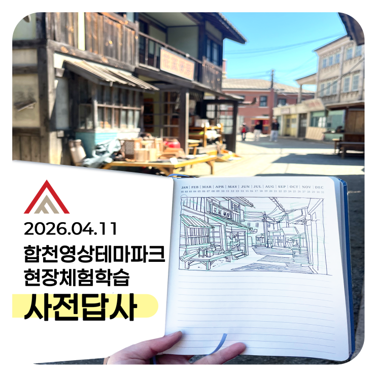 안녕하세요! 수성 애니포스 만화학원입니다. 오늘은 2026년 4월 11일에 진행하는 합천영상 테마파크 현장체험학습 사전답사 입니다. 3월 말부터 점점 날씨가 따뜻해지고 있습니다~ 봄하면 소풍이죠! 학생들의 안전을 위해 애니포스 선생님들께서 사전에 답사를 다녀오셨습니다! 선생님들은 넓은 세트장의 다양한 공간들을 꼼꼼히 살펴보며 학생들과 함께할 현장 드로잉을 먼저 실습해 보았습니다 :) 아래는 선생님들의 현장 실습작품 일부를 보여드리겠습니다! 짧은 답사 일정에도 학생들을 위해 열심히 그려주신 선생님들께 감사드립니다..! 따뜻한 봄날, 학생들에게 즐겁고 유익한 현장체험학습이 될 수 있도록 최선을 다해 노력하겠습니다. ?....... <img src="https://blogthumb.pstatic.net/MjAyNjAzMjBfNDMg/MDAxNzc0MDA5NTYxNDE4.lOFhIsSFQEEeWJDlQUS_AEq1vslGLxx96PWYXIOrEzsg.MIbOQeT9rVinH2LtDaYvR1feeKGJD0ESIZ2rd5HMS8Ag.PNG/KakaoTalk_20260320_212334267.png?type=s3" />