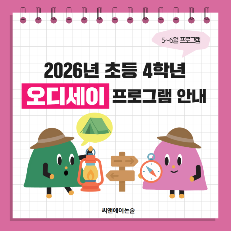 초4 사고력의 전환기, 골든타임을 잡는 씨앤에이 오디세이 프로그램 안내 안녕하세요~ 씨앤에이논술 행당점입니다. 5~6월 초4 오디세이 프로그램 안내드립니다. ▶오디세이 프로그램 영상 바로 가기 [출처] [씨앤에이논술] 초4 사고력의 전환기, 골든타임을 잡는 씨앤에이 오디세이 프로그램 안내|작성자 씨앤에이논술 씨앤에이논술 행당점 상담 및 수강 관련 문의사항 전화, 문자, 카톡, 학원친구 02-2293-1337 <img src="https://blogthumb.pstatic.net/MjAyNjA0MjNfMTc3/MDAxNzc2OTMyMTM3MzY2.oaD0SwwFiN9XMfffIueUJ0Es4fXKKGbaaPCA2sXLkcIg.8a7UT7J5sBI37EAFQ6_Z-r-RmXrjYG8vU3UXtdUXxaUg.PNG/%BF%C0%B5%F0%BC%BC%C0%CC01temp_1776304423745.-530744754.png?type=s3" />