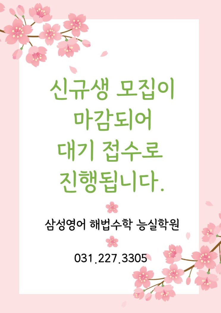 재원생 학부모님들의 신뢰 덕분에 이번 학기 삼성영어 해법수학 능실학원의 전 타임 신입생 등록이 마감되었습니다!! 현재 대기 상담 신청은 가능하며, 전학 등으로 결원이 발생 시에는 대기 순서대로 안내드립니다. 삼성영어 해법수학 능실학원 031-227-3305 #감사합니다#전타임마감#호매실동수학학원#호매실동영어학원#호매실해법수학#호매실삼성영어#해법수학능실#삼성영어능실#해법수학호매실능실#삼성영어수원#능실초수학학원#능실초영어학원#능실초 <img src="https://blogthumb.pstatic.net/MjAyNjAzMTdfMjk2/MDAxNzczNjc1MTc3MTk4.Obq2-IvJs356LwQFGTFyswy6Y_hK3oFWv47oVGnTaRAg.44UEDfRrpUDUrgSTRCoQbV1E4Pz9vcF_qiWslJrrFjAg.JPEG/KakaoTalk_20260315_141610256.jpg?type=s3" />