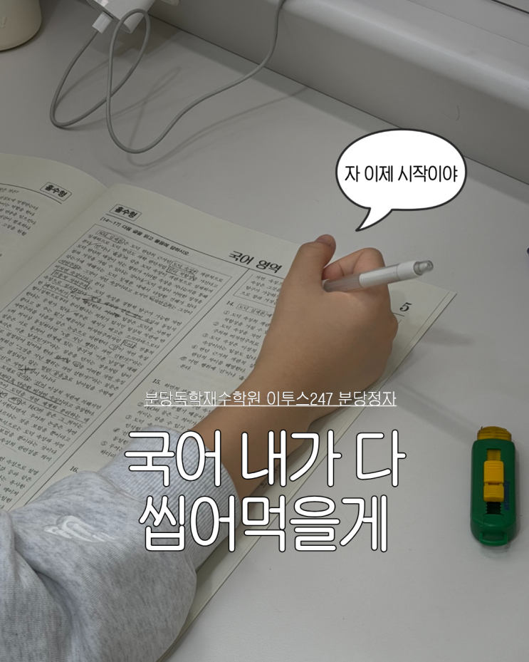 얘들아 안녕~ 최근 수능 국어 영역이 너무 어렵잖아... 그래서 이투스247 분당정자점에서 올해부터 도입한 국어 집중 케어 프로그램! 매주 한수모의고사로 똘망똘망한 아침을 보내는 우리 친구들의 모습을 같이 살펴보자 ( •̀ ω •́ )✧ 이투스247 분당정자점 친구들의 국어 실력 향상을 위한 대망의 첫번째 과제! 국어 실전 모고 훈련 시작⌛ 학생들도, 직원들도 처음 하는 날이라 긴장감이 넘쳤지만 훌륭한 재원생 친구들 덕분에 문제없이 진행완료! 우리 친구들 열심히 하는 모습에 다시보았어~ 수능 시험의 시작을 알리는 국어. 멘탈 싸움의 핵심인 국어 실력을 위해 시작하는 만큼 이투스247 분당정자점 재원생들이 국어를 씹어먹길 바....... <img src="https://blogthumb.pstatic.net/MjAyNjAzMTNfMjM0/MDAxNzczMzcwNTcyMDMz.Vol8-erO9lVLBoeUp9cgtKZA65tMpy0yVedH004ckqkg.E9h6-pxdExD9ws-esAmLnZYMMD5vEjvxBPtkbA239RQg.PNG/1.png?type=s3" />