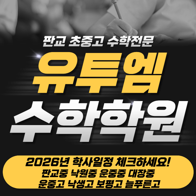 안녕하세요. 판교 유투엠수학학원 입니다^^ 판교동 수학학원 운중동 수학학원 서판교 수학학원 새 학기를 맞이하여 학부모님들께서 가장 많이 하시는 질문 중 하나가 바로, "시험준비는 언제부터 하면 좋을까요?" 입니다. 같은 내용을 공부하더라도 학교 시험 일정과 학기 흐름을 얼마나 잘 파악하고 있는지에 따라 학습 결과가 달라지기 때문이죠. 특히, 수학은 단기간에 벼락치기로 준비하기보다는 시험 전 개념 정리->유형연습->실전문제풀이의 과정이 필요하기 때문에 학사일정을 미리 확인해두고 계획을 세우는 것이 중요합니다. 이번 글에서는 올해 학습 계획에 도움이 되도록 "2026년 주변 학교들의 주요 학사일정&q....... <img src="https://blogthumb.pstatic.net/MjAyNjAzMTRfMTc3/MDAxNzczNDc0NDUxNzE2.ulsCbctA0G54wNjrOnwm89rN5hyJiK781g2SMJzHwRAg.zqJAQ-s0CMoCgM9qQUkgL96M4exDhFZ1kyZidy5ynCAg.PNG/image.png?type=s3" />