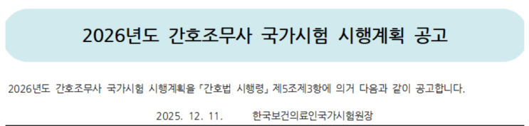 2026년도 간호조무사 국가시험 안내 (응시자격/응시기간 및 시험안내)