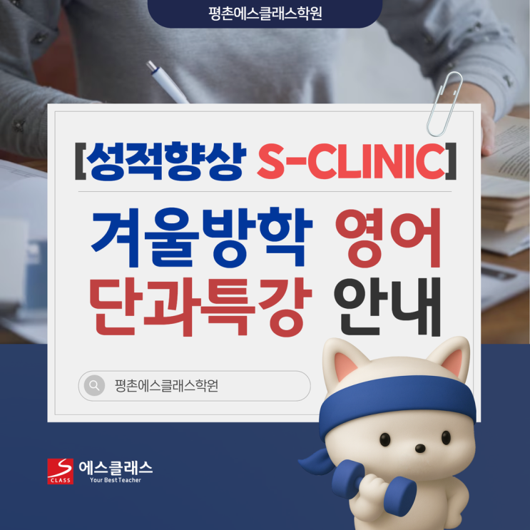 2026학년도 새학년 대비 명품 영어 단과 특강 안내 새 학년을 준비할 때 가장 먼저 점검해야 하는 영역은 문법입니다. 문법은 독해·서술형·모의고사까지 모든 영역의 기초가 되기 때문에, 새 학기 시작 전 정리해두는 것이 성적 향상에 가장 큰 효과를 줍니다. 에스클래스는 2026학년도 새학년을 대비하여 학생들의 문법 기반을 정확하게 다지는 명품 영어 단과 특강을 진행합니다. 에스클래스영어 겨울 단과특강은 학기 중에 부족했던 파트를 단기 실력 향상을 목적으로 기획, 구성된 파트별 핵심 특강입니다. 겨울방학을 통해 부족했던 영역을 확실히 향상시켜서 안정된 내신 및 수능성적을 만들길 바랍니다. 개강 정보 개강일: 2026년 1월 8일....... <img src="https://blogthumb.pstatic.net/MjAyNTEyMTFfMTI5/MDAxNzY1NDQ0MDI5MjQ3.W22QaRrrZebuwxeCaNK6fSBMRU61xKqVk-es399-6S8g.0vua9CmAfkjcmjlAq7m8DfpFhE_vYpZVMe1jqPrXaXEg.PNG/%B3%BB%BD%C5%BA%D0%BC%AE_%2889%29.png?type=s3" />