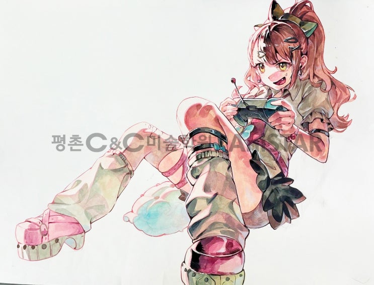 안녕하세요 평촌씨앤씨 미술학원 애니스타입니다. 저번주에 말씀 드린 라이팅 완전정복 2부를 가져왔어요! ㅎㅎ 라이팅 정복하기! 라이팅 설정 및 톤 통일 / 고유색 적용 및 그림자 표현 햇살의 색깔을 분홍색에서 주황색 계열로 설정하겠습니다. 이에 맞춰 인물과 개체의 모든 고유색에 해당 계열의 색을 추가하여 전체적인 톤을 통일합니다. 이후 채색을 시작하기 전, 인물 전체에 연한 분홍색 밑색을 한톤 깔아줌으로써 그림에 통일된 분위기(오버레이 효과)를 부여합니다. 광원에 위치를 설정해야하는데 전 인물 얼굴 기준 좌측상잔으로 설정했습니다. 채색은 연한 분홍색(빛 색)으로 칠할 부분을 남겨두고, 그림자가 적용될 부분에만 고유색....... <img src="https://blogthumb.pstatic.net/MjAyNTEyMTNfMjMy/MDAxNzY1NjEwNTE4Mzgy.u-m2RqRlG0mlGxA83vELWiPnZfZUCXfamybSL7MDRekg.8yNnulCYh50tRllEgbvC4ZQQVHyVC15FwXysK9UZEqgg.JPEG/2-4.jpg?type=s3" />