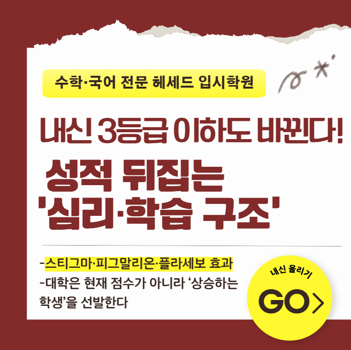 【수학·국어 전문 헤세드 입시학원】 내신 3등급 이하도 바뀐다! 성적 뒤집는 ‘심리·학습 구조’