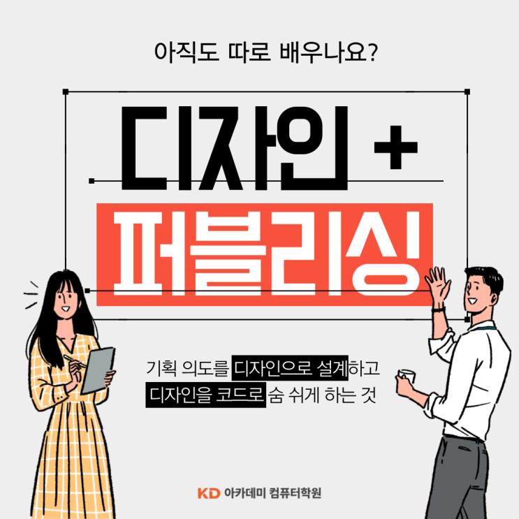 안녕하세요! 김포 지역 취업 준비생들의 든든한 파트너 KD아카데미 컴퓨터학원 김포점입니다. 웹 디자인과 웹 퍼블리셔는 비슷하면서도 다른 업무를 합니다. "웹 디자인을 배우면 퍼블리셔도 될 수 있나요?" 상담시에서 가장 많이 듣는 질문 중 하나인데 오늘은 웹 세상의 설계자인 웹 디자이너와 그 설계를 현실로 구현하는 웹 퍼블리셔의 차이점을 KD아카데미와 함께 깔끔하게 정리해 보겠습니다. 웹 디자이너 vs 웹 퍼블리셔 쉽게 비유하자면 '집을 짓는 과정'과 같습니다. 웹 디자이너가 인테리어 도면을 그리는 사람이라면, 웹 퍼블리셔는 그 도면을 보고 실제로 벽을 세우고 수도를 연결해 사람이 살 수 있는 공간으로....... <img src="https://blogthumb.pstatic.net/MjAyNjA0MjlfMjU1/MDAxNzc3NDQ3ODczMDIw.uGMr_63sodAyTQDfNAITtGEwHvfYsnMqRjKbzV-PH8Mg.9GXO4lIH7MzrEJ8mL0tG9G6f_qv3xwgRD2gl4BWdfIsg.PNG/%C1%A6%B8%F1%C0%BB-%C0%D4%B7%C2%C7%D8%C1%D6%BC%BC%BF%E4_-001_%2813%29.png?type=s3" />