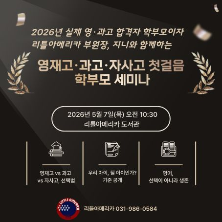 “내 아이가… 이런 길을 생각해도 되는 걸까요?” 한 번쯤은 마음속으로 떠올려봤지만, 괜히 욕심처럼 느껴져서 스스로 그 생각을 접어버리신 적 있으신가요? 혹은 “우리 아이는 아직 아닌 것 같아서…” “괜히 앞서가는 엄마가 되는 건 아닐까…” 그렇게 궁금함보다 먼저 조심스러움이 앞섰던 순간들. 사실 많은 어머님들이 비슷한 마음을 안고 계십니다. 그래서 더더욱 누군가에게 편하게 묻기도 어려웠던 질문들. 하지만 괜찮습니다. 그 마음, 전혀 과한 것도 아니고 부끄러운 것도 아닙니다. 오히려 **아이를 진심으로 생각하는 엄마라서 자연스럽게 드는 질문입니다.** 이번 [영재고·과학고·자사고 첫걸음 학부모 세미나]는 확신 있는 분....... <img src="https://blogthumb.pstatic.net/MjAyNjA0MzBfMTI1/MDAxNzc3NTIyMTUzNzEx.CuAhdixAWTUYkTOataZMo-pCAQQe48jNCIXxAAYeVYsg.tsxTSo7lRpdEmGBFI3WYwpNsZIt3chCQo6-nQwSj1DQg.PNG/KakaoTalk_20260430_124344813.png?type=s3" />