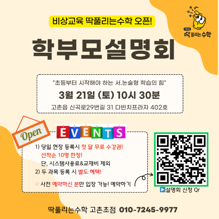 고촌 학부모님 주목! 딱풀리는수학 고촌초점 신규 오픈 학부모 설명회 안내