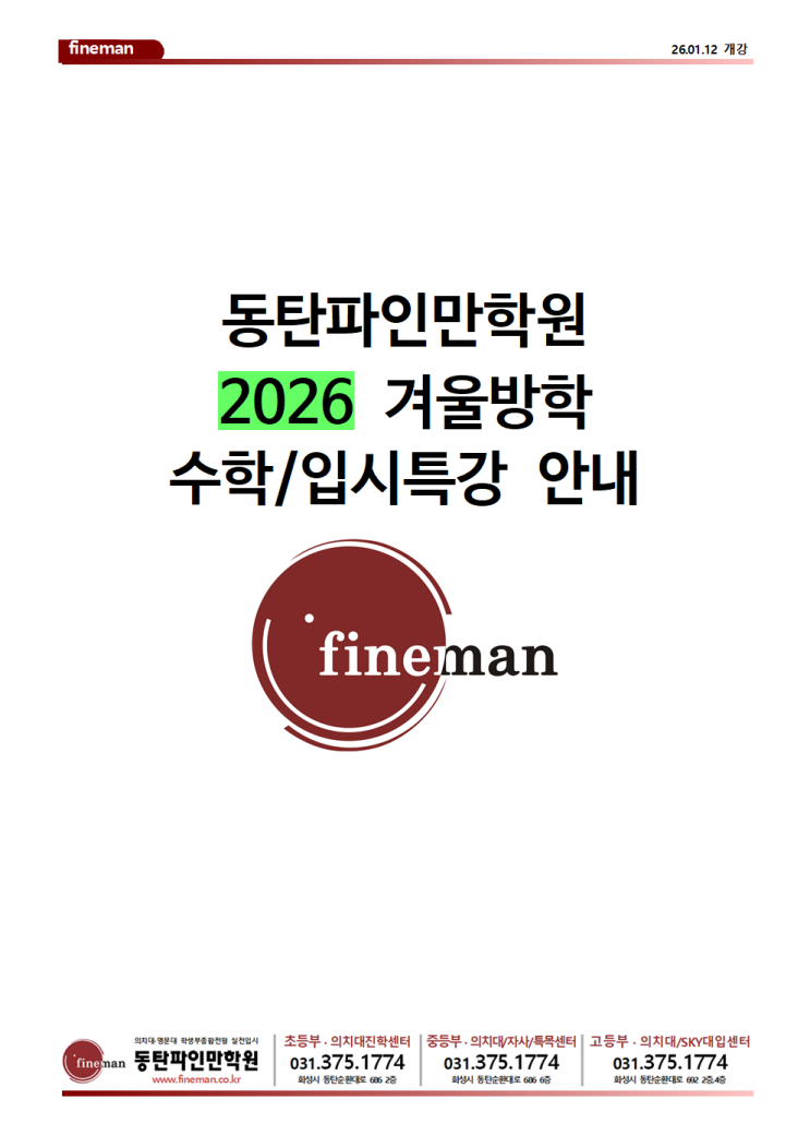 [동탄파인만] 2026 겨울방학 수학/입시특강 프로그램 개강안내