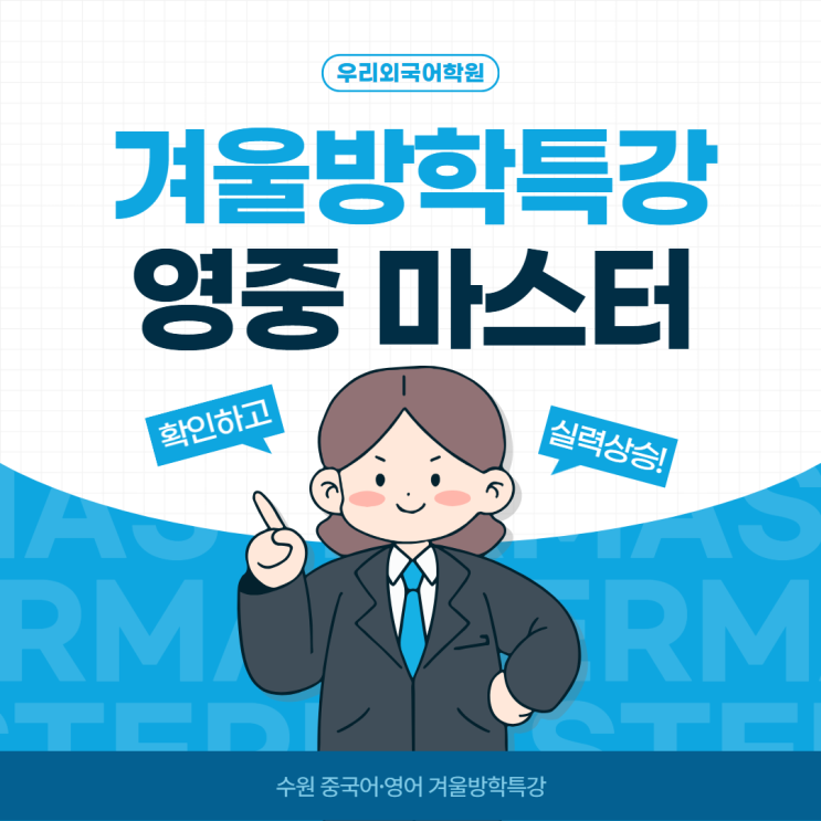 겨울방학은 학기 중에 부족했던 외국어 실력을 정리하고, 다음 학기를 준비하기에 가장 좋은 시간입니다. 세부적인 커리큘럼 보러가기 특히 중국어와 영어는 짧은 기간 동안 집중적으로 학습했을 때 실력 차이가 확실하게 나타나는 과목입니다. 수원 지역에서 중국어·영어 겨울방학특강을 찾고 있다면, 단순한 보강 수업이 아닌 체계적인 목표 설정이 가능한 과정인지 살펴볼 필요가 있습니다. 수원 우리외국어학원의 겨울방학특강은 학생과 성인 수강생 모두를 대상으로, 방학 기간 동안 실질적인 성과를 만들 수 있도록 구성된 집중 과정입니다. 학기 중 수업과는 달리 학습 밀도를 높이고, 말하기와 시험 대비를 동시에 진행할 수 있도록 커리....... <img src="https://blogthumb.pstatic.net/MjAyNTEyMjJfMzMg/MDAxNzY2Mzg1NDcwNzYx.K5P4qpVpDzzd8862xWrzs9IffER8Xsoup28n2L7VK1wg.epoJkSTi5kwVk8j44NSxfYthj_e5QvTPCsCXmZd-Ey4g.PNG/%C1%A6%B8%F1%C0%BB_%C0%D4%B7%C2%C7%CF%BC%BC%BF%E4_1.png?type=s3" />