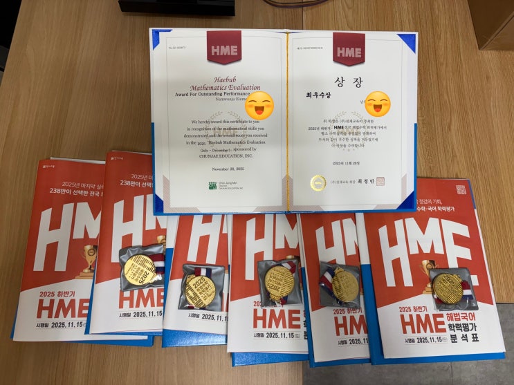 정말 오랜만의 포스팅. 갑작스러운 엄마의 건강 문제. 2주간의 입원 후 다행히도 퇴원을 하셨지만, 근 한 달 동안 온 가족이 힘든 시간을 보냈습니다. 물론 엄마가 제일 힘들었을 테지요. 한동안 산소 호흡기를 사용하셔야 한다니 조금은 불편하시겠지만, 그래도 이만하니 천만다행이지 싶습니다. 많은 분들의 기도에 너무나 감사하고, 옆에서 버팀목이 되어준 정쌤도, 이겨내신 엄마도 참 고맙습니다. 진심으로... 시간이 허락하는 한 "엄마"랑 많은 시간을 보내기로. 어김없이 한 해는 저물고, 야심 차게 꾸며본 트리. 다들 한 해 마무리 잘하시길... 지난번 HME 결과가 나왔습니다. 조금은 아쉬운... ^^;; 한 문제로 76점 우수상 2명....... <img src="https://blogthumb.pstatic.net/MjAyNTEyMjFfOTkg/MDAxNzY2Mjk4NTczODUy.tA2BPMBQMWNFKTJ50F2aJFmIjbmUSP2sDVu6F2V3clYg.3OV8XmQm2305SpkQC5jVfSJgJIxRJckOdYCeFz-MHhMg.JPEG/KakaoTalk_20251221_135224888_01.jpg?type=s3" />