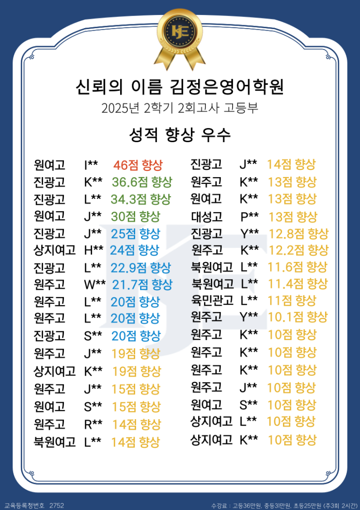 고생했어 역시 고등부, 성적향상에 집중해주세요 상지여고 대단해 #대세는죵팸 #어차피_영어는_김정은영어 #원주입시영어의중심_kje #학생중심주의_김정은영어 #학생들이행복한학원_김정은영어학원 #꽃길메이커_김정은영어 <img src="https://blogthumb.pstatic.net/MjAyNTEyMjJfMTE1/MDAxNzY2MzcxNjk4NDI2.nI_75Lln-0KGGQt1GlBCjbsSVdQZWqAO9uB59zw4ZKUg.AjEiD_CI_RfUaSswB5of_5Yz9LRTaehnEBUeLdj04s8g.PNG/1766144841777.png?type=s3" />