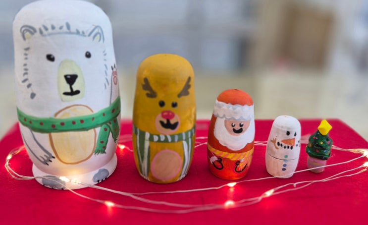 안녕하세요! 이번 미술 시간에는 미크 아이들과 "크리스마스 마트료시카"를 주제로 수업했습니다! 마트료시카란? 마트료시카는 가족의 이야기를 큰 인형 속에 작은 인형들이 차곡차곡 들어가는 구조로, 가족, 풍요, 행운의 의미가 담긴 러시아 전통 목각 인형입니다. 이 유래를 바탕으로, 미크 아이들과 다가오는 크리스마스를 맞이해서 자신이 떠올린 크리스마스를 마트료시카에 차곡차곡 담아보기로 했습니다~ 목각 인형에 바로 스케치를 하기 전, 에스키스를 통해 전체적인 디자인 흐름과 채색 계획을 세워보기로 했습니다. 이 과정에서 아이들은 머릿속에 떠도는 아이디어를 스스로 인지할 수 있고, 착오없이 계획적으로 작업할 수....... <img src="https://blogthumb.pstatic.net/MjAyNTEyMjJfMTUx/MDAxNzY2Mzg0MDI1MjI4.ywcTr5TUcaYdGq8Z-M-z5Esg_X0jF50qL8hPrdvbHAwg.RumQwR7mlYVYaUwgdD_Hoi2kuwaZC-8_W6PyiFTONPog.JPEG/KakaoTalk_20251222_145426551_04.jpg?type=s3" />