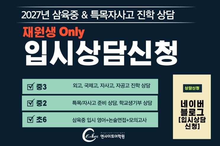 원주영어 엔사이트어학원 재원생 입시상담 신청/특목자사고/원주삼육중