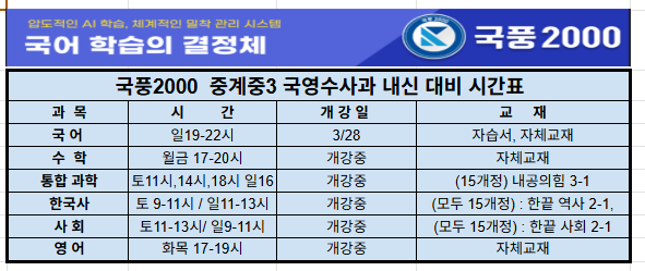 중계중3 중간고사 과목별 시간표