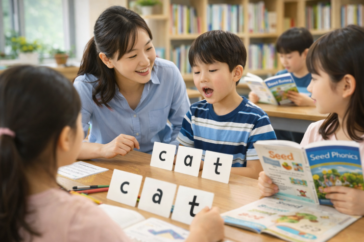 루체테 Seed 파닉스는 왜 그림 없이 시작할까? 처음 영어를 시작할 때 아이 손에 쥐어지는 건 보통 ‘그림이 많은 책’입니다. 사과 그림을 보면서 아이는 말합니다. “애플!” 그런데, 아이가 정말로 읽은 걸까요? 시각 중심 학습의 한계 많은 아이들이 그림을 보고 ‘기억’합니다. 하지만 그림이 사라지면 갑자기 읽지 못합니다. 책에 그림이 없으면, 문장을 만나면, 고개를 숙입니다. “몰라요…” 그 순간, 아이의 읽기 자신감도 함께 흔들립니다. 그래서 루체테 Seed는 다르게 시작합니다. 루체테영어학원 Seed 과정의 목표는 분명합니다. ✔ 글자를 보고 ✔ 스스로 소리를 내고 ✔ 정확히 읽어내는 것 처음에는 조금 느립니다. 그림이 없....... <img src="https://blogthumb.pstatic.net/MjAyNjAyMjBfMTA4/MDAxNzcxNTgzMzIxODEz.PJ9LQJksCMnVoj2Oyjo0ttNw-fCAaROB3QF6mbkPFbwg.aizbSFd01pwNMpxsexW7qvqIbBDQ26IgANCKli6X1awg.PNG/%B7%E7%C3%BC%C5%D7_%C6%C4%B4%D0%BD%BA.png?type=s3" />