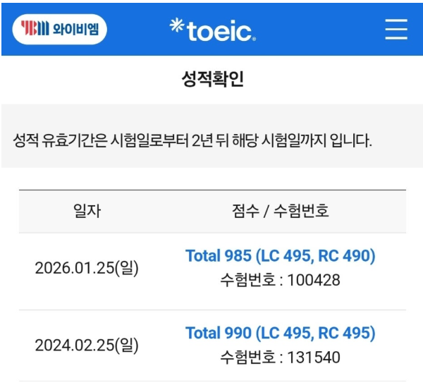 [전주토익] 토익을 보고 성적을 공개하는 몬스터토익학원 대진쌤 성적표 공개~!! 만점컷 990점 985점 왔다갔다 ㅋㅋㅋ
