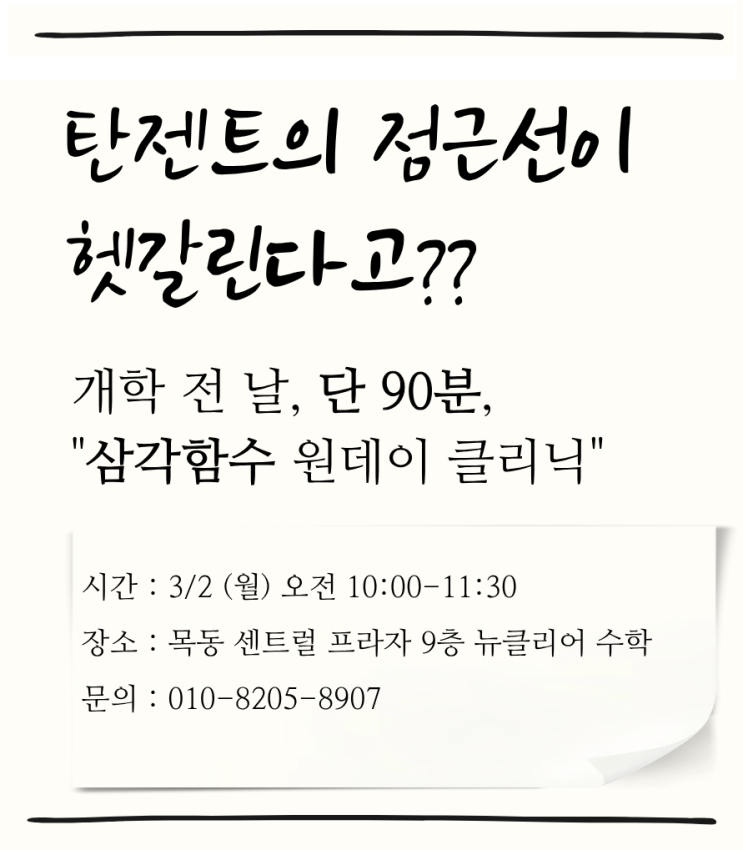 [목동수학학원/뉴클리어학원] <3/2(월) 무료특강> 삼각함수 원데이 클리닉 안내