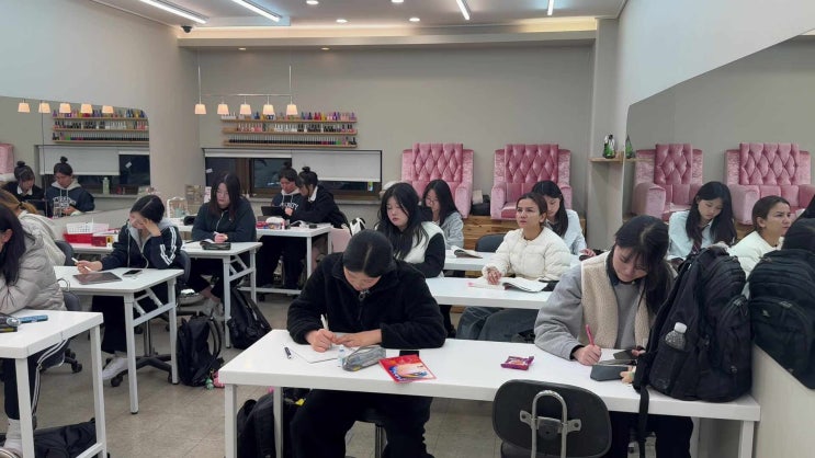 안녕하세요 :) 오늘은 원장님과 함께하는 미용사 필기 수업 현장을 소개해드리려고 합니다! 미용사 자격증을 준비하면서 실기만큼이나 중요한 것이 바로 필기 시험인데요✨ 이론이 탄탄해야 실기 이해도도 훨씬 높아지기 때문에 저희 학원에서는 필기 수업도 꼼꼼하게 진행하고 있습니다. 수업은 원장님이 직접 진행하시면서 핵심 이론을 하나하나 짚어주시고, 시험에 자주 출제되는 포인트를 중심으로 설명해주셔서 학생들이 훨씬 쉽게 이해할 수 있어요 특히 단순 암기가 아니라 왜 그런지 이해할 수 있도록 풀어서 설명해주시기 때문에 처음 배우는 학생들도 부담 없이 따라올 수 있는 수업입니다. 중간중간 문제 풀이도 함께 진행하면서....... <img src="https://phinf.pstatic.net/image.nmv/blog_2026_03_17_4028/PjOEMY1VWQ_03.jpg?type=f480x480" />