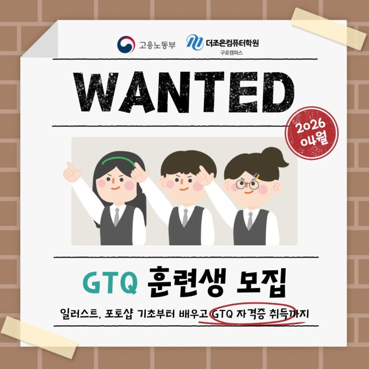 일러스트·포토샵 기초부터! GTQ 자격증까지 한 번에 안녕하세요, 구로디자인학원입니다! 요즘은 디자인도 기본 스킬이 되어가고 있어요! SNS 콘텐츠, 마케팅, 쇼핑몰, 영상 썸네일까지 디자인이 필요한 곳이 정말 많아졌습니다. 그래서 오늘은 디자인을 처음 시작하는 분들도 도전할 수 있는 ✔ 일러스트 & 포토샵 기초 과정 ✔ GTQ 자격증 취득 과정 을 소개해드리려고 합니다! 일러스트 & 포토샵, 왜 배워야 할까요? 디자인 작업에서 가장 많이 사용되는 프로그램! ✔ 일러스트레이터 (Illustrator) ✔ 포토샵 (Photoshop) ✔ 일러스트 → 로고, 배너, 2D 그래픽 제작 ✔ 포토샵 → 이미지 보정, 합성, 편집 두 가지를 함께....... <img src="https://blogthumb.pstatic.net/MjAyNjAzMjBfMTAy/MDAxNzczOTg4OTk4ODA2.fyD-4RA10XP_h15W8K7tz6SPAY9eqHCwS0MF8RDbYEgg.oZX_2MNGSifFJa9d_jn2BiYmQ3G6CQ7gEnWVJjOzPasg.JPEG/1.jpg?type=s3" />