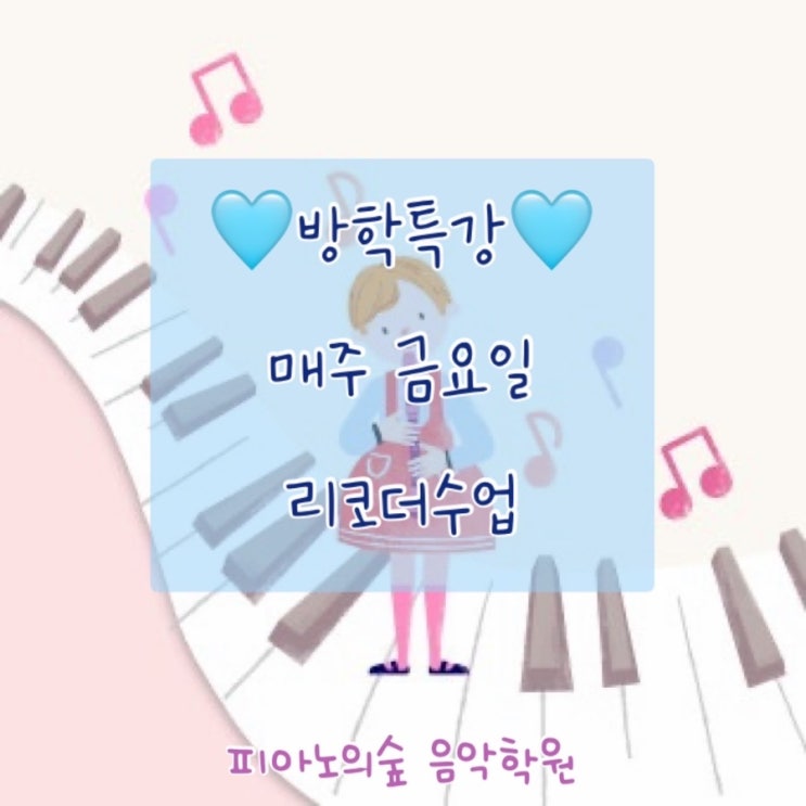 안녕하세요 초곡 피아노의숲 음악학원 입니다☺️ 오늘은 방학특강수업인 리코더 수업 영상을 올려보려고해요 리코더수업은 생각보다 많은 연습 시간이 필요하답니다 그래서 비교적 여유로운 방학기간동안 매주 금요일마다 리코더 특강수업이 진행되고 있어요~ 겨울방학기간인 1월~2월 2개월간 열심히 연습중인 우리 피아노의숲 음악학원 친구들 리코더를 처음 접하는 친구, 좀 더 난이도 있는 단계를 배우는 친구 각자 개인의 진도에 맞게 개별적으로 지도하고 있어요 ㅎㅎ 칭찬과 격려를 아끼지 않고 이끌어 가고 있답니다 꾸준히 노력하는 친구들의 모습이 너무 이쁘죠? 점차 실력이 늘어가는 모습을 보면 너무 뿌듯하답니다....... <img src="https://blogthumb.pstatic.net/MjAyNjAyMjBfMTky/MDAxNzcxNTc1NzUyMDk5.C1phN2tVKAFwzyh_uE5YzGmFDSvRINvoyspZY32ryXYg.Zs2m7rkkLtZxXTWmrjRaT_YcVjXSpLl7ww9xRE5kc4Qg.JPEG/IMG%A3%DF7820.JPG?type=s3" />