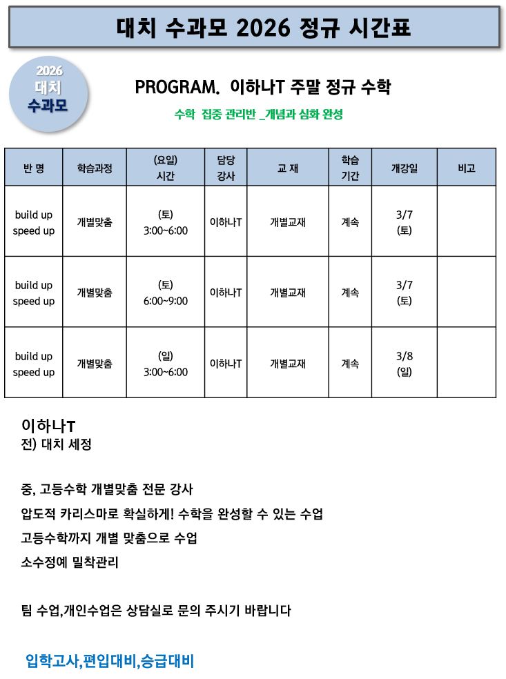 이하나T 전) 대치 세정학원 초중고 수학 전과정 개념완성 및 응용,심화 매회 테스트 및 월말평가 레벨별 맞춤 개별수업 승급 및 편입 대비 경시대비 / 입학고사대비 원수학,돌파,이든,생수 입학고사 대비 황소 BACK UP <img src="https://blogthumb.pstatic.net/MjAyNjAyMjNfMTkg/MDAxNzcxODE2ODU1MTIx.RR9FetTr5cKpE3hBFujXt2rx805P0WQTs7EMl8hJyqIg.V6p4ZgQOnYBgOh4wSvlBTGlvPEfuGRcyfYt4YtjusEIg.JPEG/%C0%CC%C7%CF%B3%AA.JPG?type=s3" />