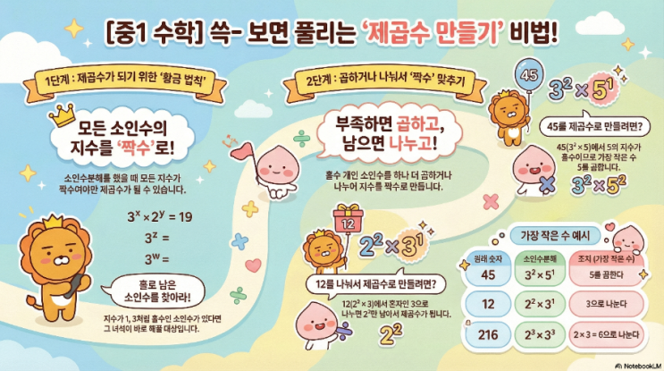 중학교 1학년 제곱수 만들기인데 쉽게하는 방법을 올립니다. 더 자세한것은 아래주소를 참고하면 됩니다. https://youtu.be/q-IzZCRJWQA?si=KLQDE44R4v6fx5M2 #중1수학 #소인수분해 #제곱수 #지수의원리 #수학개념정리 #수학공부법 #내신대비 #수학기초 #중등수학 #제곱수만들기 #수학원리 #빠른풀이팁 <img src="https://blogthumb.pstatic.net/MjAyNjAyMjBfMTc2/MDAxNzcxNTY2NTAzOTk5.wXY1yiVctcl1_njRXGuXNzljRTZo6vryS2dDUeWusvEg.w-_6mkshj2SUVCq4hxRgb5aut5vL_B6NYFg7JCQSg-4g.PNG/900%A3%DFunnamed_%A3%A86%A3%A9.png?type=s3" />