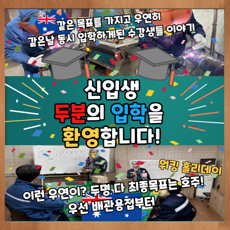 용접학원 "신입생 두분의 입학을환영합니다." 같은 날 같은 목표를 가지고 동시 입학하게된 수강생들의 이야기 Feat. 용접사로 호주 워홀