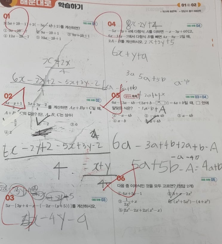 개념은 아는데, 계산·정리에서 무너지는 단계 괄호가 여러 번 나오면 부호 실수가 잦고, 항을 놓치거나 더하고 빼는 순서가 흔들리는 학생입니다. 문제를 “풀긴” 하지만, 어떤 식을 세우고 무엇을 정리할지가 고정되어 있지 않습니다. 그래서 정답 근처까지 갔다가도 마지막 계산에서 오답으로 마무리되는 경우가 많죠. 즉, 정리 루틴이 없어서 실수에 실수가 반복되는 문제를 가진 학생이였습니다. 식세우기 → 정리 → 검산까지 ‘루틴화’가 된 단계 사진에는 없지만 풀이 노트에 차분히 수식을 정리하고 풀이에서 오류 찾기를 반복하여 체화된 이후 확실히 달라졌습니다. 문제에서 문장으로 읽고 → 식으로 옮기는 속도가 빨라지고, 각 유....... <img src="https://blogthumb.pstatic.net/MjAyNjAyMDhfMjIy/MDAxNzcwNTQ4MDYxNDI1.6eeSuZFzEkoXL2Eab80_Ou-oa4-k9-G5PsAFJyYlLFwg.RuoccMVo93WEx7h0uBMmR-R39kYSXcXiKkb3bbAX0XAg.JPEG/KakaoTalk_20260125_1912322241.jpg?type=s3" />