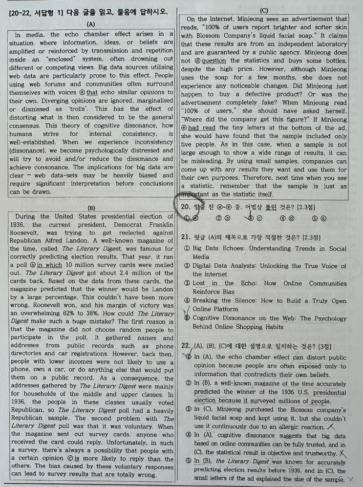 안녕하세요. 범물동에 위치한 위영선 영어학원입니다. 범물동에서 고등 내신 대비를 꾸준히 지도해오고 있는 범물동 영어학원 위영선 영어학원입니다. 오늘은 수성고 2학년 학생들이 치른 2025학년도 2학기 영어 기말고사 내신시험을 바탕으로, 시험 전반의 난이도와 출제 흐름을 꼼꼼하게 분석해보도록 하겠습니다. 수성고 2학년 영어 내신은 단순히 지문을 읽는 수준을 넘어, 문장 구조와 논리 전개를 정확히 파악해야 점수를 안정적으로 확보할 수 있는 시험이라는 점에서 매 시험마다 분석이 꼭 필요한 편입니다. 특히 범물동 영어학원을 찾으시는 학부모님들께서는 “이번 시험이 어려웠는지”, “어떤 유형에서 변별력이 갈렸는지”, “우....... <img src="https://blogthumb.pstatic.net/MjAyNjAyMDhfMjUy/MDAxNzcwNTM0MzEyMDA3.kDi9-npX-YHcoOjvrztPGNv_vVyNYeTDpJUVoOawlgkg.3mhVGcE-xYVqFTMStPs3Np49LnI6FemWBEMlxHSWqeAg.JPEG/KakaoTalk_20260208_160254233.jpg?type=s3" />