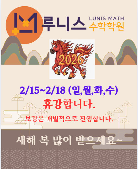 설입니다! 일요일부터 ~ 수요일까지 휴강합니다. 보강은 담당쌤과 일정 조율 후 진행하시면 됩니다. 새학기 얼마 안남았네요 남은 2월 마무리 잘해봅시다!! 새해 복 많이 받으세요~ <img src="https://blogthumb.pstatic.net/MjAyNjAyMTFfMzgg/MDAxNzcwNzg1OTU4MTk5.DYnj-FEfVekjAct6HRzwWmbb6ilECJIdPClGR_Z6IGog.QTtobJOFBB1UvmOuoqTlOkVgJ_WTMlzEJJ2pyBON5T4g.PNG/image.png?type=s3" />