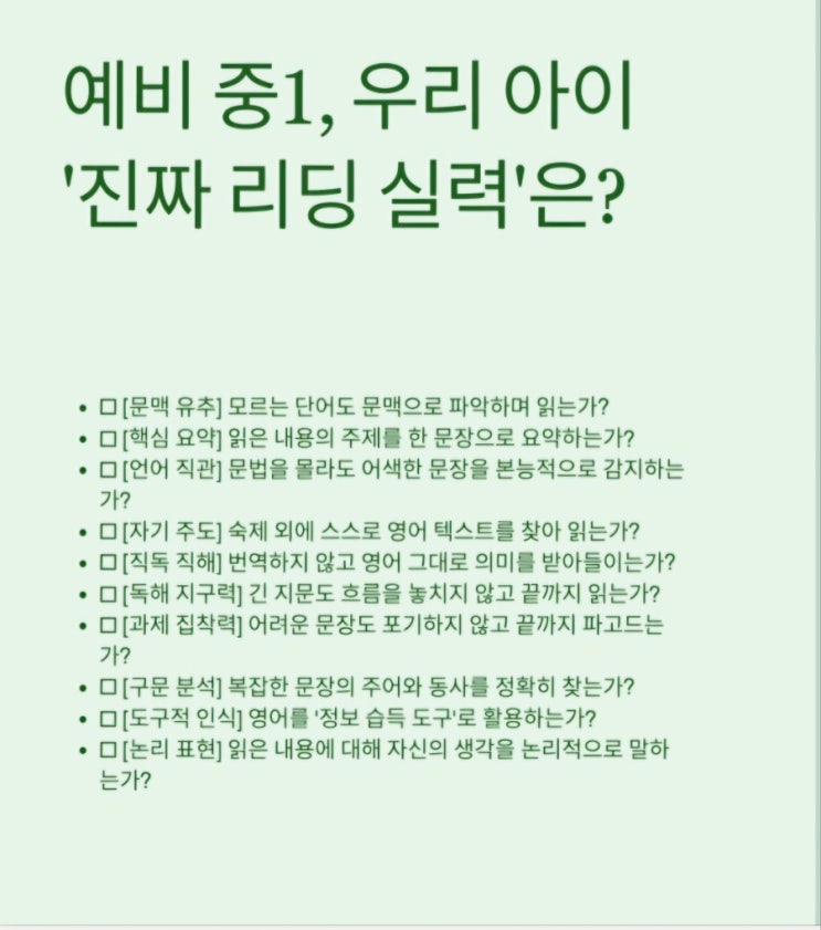 안녕하세요, 이유영어도서관입니다. 초등학교를 졸업하고 중학교 입학을 코앞에 둔 2월, 예비 중1 학부모님들의 고민은 하나로 모입니다. "이제 본격적인 입시 영어를 시작해야 하니, 원서 읽기는 그만두고 문법과 단어 암기에 올인해야 하지 않을까?" 주변의 불안한 시선에 휩쓸려 무작정 문제 풀이 학원으로 방향을 틀기 전, 객관적인 팩트 한 가지를 먼저 짚고 넘어가야 합니다. 중등 내신 최상위권과 고등 수능 1등급을 결정짓는 핵심은 '얼마나 많은 문법 공식을 외웠느냐'가 아니라, '복잡하고 낯선 지문을 끝까지 읽어내고 논리적으로 파악하는 문해력(Literacy)'에 있습니다.결국에는 리딩이 되느냐의 문....... <img src="https://blogthumb.pstatic.net/MjAyNjAyMjBfMTI4/MDAxNzcxNTU0MjY4NTc4.emIUE9yYrGDcKBWav44dGaPyN_0TOcsA7HFNiocZOs0g.1snHGx-q49YPA1Ul_Svq2sXK4Nf6DXbu3anK7WI9qPgg.JPEG/900%A3%DFScreenshot%A3%DF20260219%A3%DF151904%A3%DFSamsung_Notes.jpg?type=s3" />