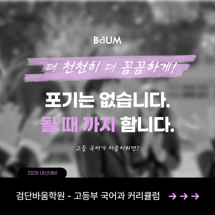 안녕하세요, 검단바움학원입니다. 고등 국어, 왜 공부해도 점수가 오르지 않을까요? 고등 국어는 분명 시간을 투자하고 있습니다. 문제집도 풀고, 시험 범위도 정리합니다. 그런데도 성적은 기대만큼 오르지 않습니다.. “분명히 공부는 하는데 왜 점수가 들쭉날쭉할까요?” “지문은 읽었다는데, 왜 문제에서 자꾸 틀릴까요?” 그 이유는 생각보다 단순합니다. ‘읽는 방식’이 완성되지 않았기 때문입니다. 고등 국어는 더 이상 암기 과목이 아닙니다. 교과서 지문조차 수능형 사고력을 요구하고, 내신 시험 역시 단순한 내용 확인이 아니라 구조 이해와 논리적 해석 능력을 묻고 있습니다. 문제를 많이 푸는 것과 지문을 정확히 읽는 것은 전....... <img src="https://blogthumb.pstatic.net/MjAyNjAyMjdfMjgz/MDAxNzcyMTkwMzY5ODQ0.xdqF7MF1K7dTMU7Q8Xr_BKKpNnqbG9UPconiMYW1iBgg.kx4X7nvBFAAiGwBWmmotJtCqt5MahGJWe0SCE6OXeK0g.PNG/%B0%ED%B5%EE-%B1%B9%BF%B5%BC%F6-%C4%BF%B8%AE-003.png?type=s3" />