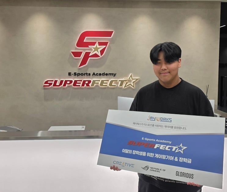 안녕하세요! 슈퍼펙트 이스포츠 아카데미입니다! 일교차가 심해서 요즘 감기에 걸린 사람들이 많아졌어요.. 다들 감기 조심하며 잘 지내시나요? 오늘의 포스팅 내용은! 슈퍼펙트 이스포츠 아카데미의 이달의 장학생 소개입니다! 전에도 소개해 드렸지만 처음 오시는 분들을 위해 다시 설명 드리자면! 이달의 장학생은 아카데미의 우수한 학생에게 제이웍스의 지원을 받아 장학 물품을 선물해주는 것인데요! 단순히 게임 실력뿐만 아니라, 성실한 훈련 태도와 눈부신 성장을 보여준 수강생을 엄격히 선정하고 있습니다... 이번 달, 이 특별한 주인공이 된 영광의 얼굴은 바로... 이@@ 수강생입니다! 진심으로 축하드려요! 슈퍼펙트 이스포츠....... <img src="https://blogthumb.pstatic.net/MjAyNjAzMjBfMTU1/MDAxNzczOTkxMzUwMjAx.0_Hzuhl2dt-XIuHIPGyNfqKjg4RkhNAuqflMNA_y83wg.FmFt5Dj71wtIx4rxm34vvRVAO9SKa9Bs4AagCkeJKcgg.JPEG/20260222_%C0%CC%BD%C2%C0%E71.jpg?type=s3" />